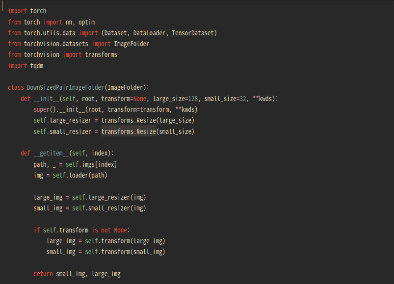 다음으로 제각각인 영상의 크기들을 128x128과 32x32로 두 가지 경우로 나누어 입력값과 Ground Truth값으로 만든다.