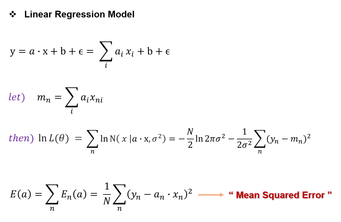 위 그림과 같이 해석적으로 결과를 분석하면, 평균제곱오차를 최소화하는 a 벡터값을 추정하는 것이다.